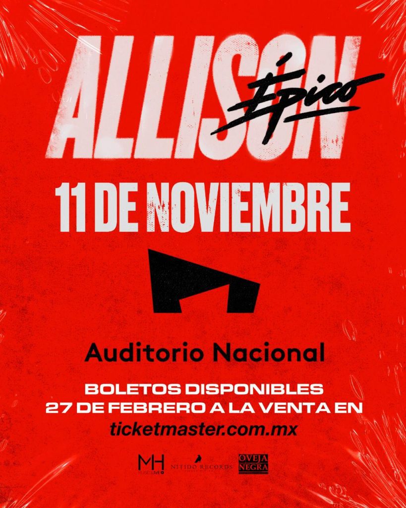 Allison se presenta con su show “Épico” el Miércoles 11 de Noviembre a partir de las ocho y media de la noche en el Auditorio Nacional. Boletos a la venta en el Sistema Ticketmaster.
