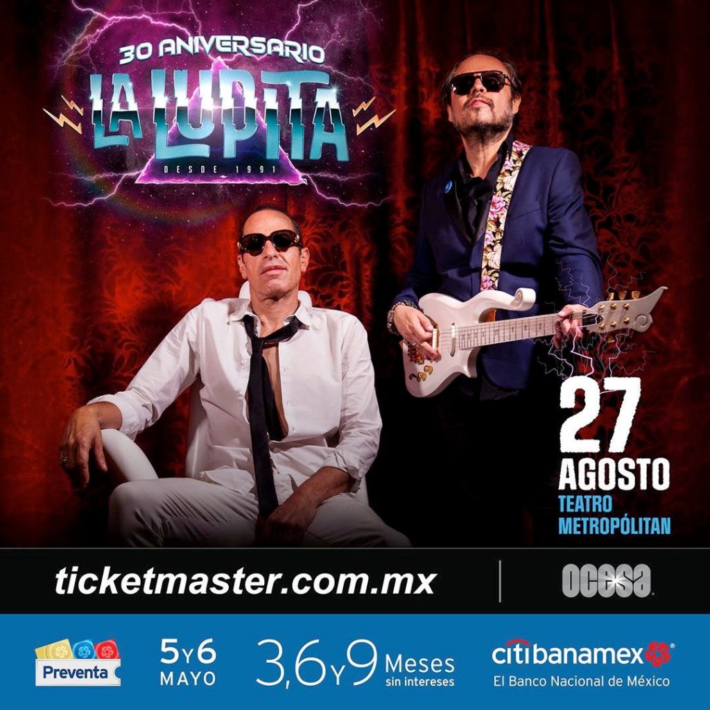 El dúo integrado por Lino Nava y Héctor Quijada ha mantenido una carrera sin prisas, pero contundente en cada paso que han dado y en este 2022 La Lupita cumple 30 años de haber comenzado a plasmar su nombre en el entonces llamado «rock en español» y lo festejarán en grande. Así que su festejo por sus 30 primaveras será en el Teatro Metropólitan el próximo 27 de agosto.